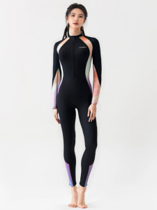 2025 新しい女性の夏の大きいサイズワンピース長袖ジッパー水着痩身日焼け止めカーブ通気性レインボーライン