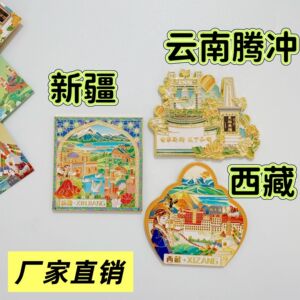 新疆、雲南、チベットの文化的で創造的な冷蔵庫用マグネット、金属工芸品、旅行のお土産、景勝地の周辺記念品
