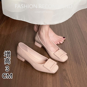 スカート付き女性用ヌードカラーの超柔らかく疲れにくい靴、2025年の新しい職場の軽い大人のスタイルのスクエアトゥ太いヒールの通勤靴