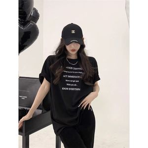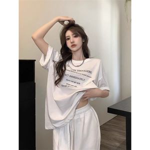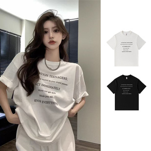 レタープリント半袖レディース夏新作香港風Tシャツカジュアルゆったりアイスシルク涼感トップスアイスシルク風