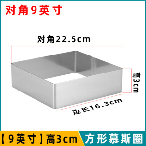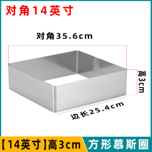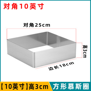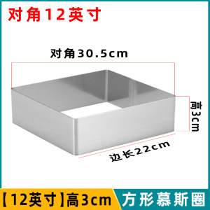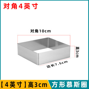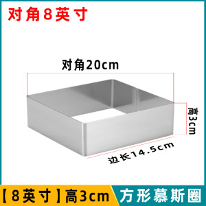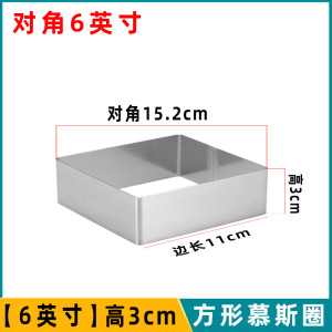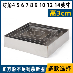 高さ 3 センチメートル正方形ケーキリング肥厚ステンレス鋼ムースリングケーキベーキングモールド豆腐型 4 5 6 8inch