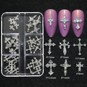 クロスボーダー卸売 6 グリッド箱入りクロスネイルアート合金ジュエリーシンプルなホワイト K ダイヤモンドジュエリーメタルネイルアクセサリー装飾