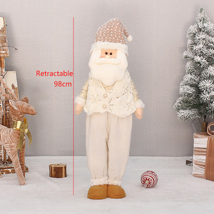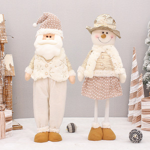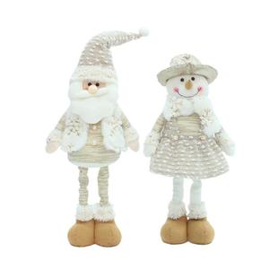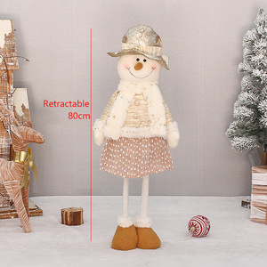 跨境新品浅色布艺坐姿站立可伸缩老人雪人公仔玩偶圣诞节装饰摆件