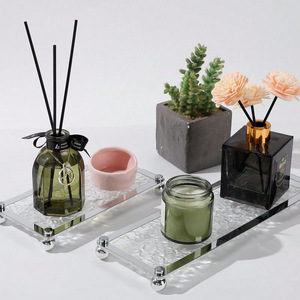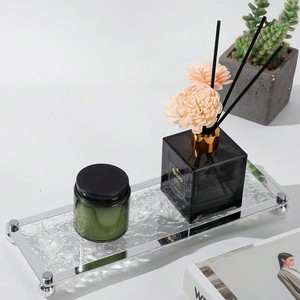 アクリル洗面台収納ラックバスルームライト高級化粧品透明石模様トレイデスクトップ装飾品