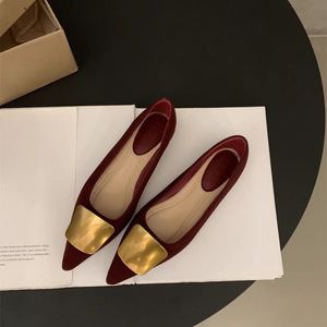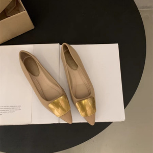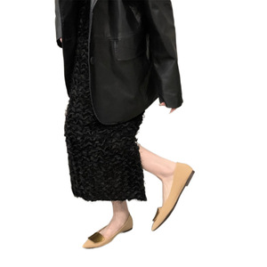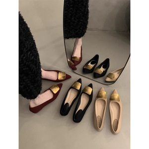 フレンチポインテッドトゥの気質ブラックフラットシューズ婦人靴2025春秋新作夏秋レトロ浅口通勤靴