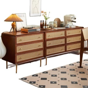 北欧無垢材 3、4、6 チェストシンプルモダンな収納キャビネット寝室多機能ベッドサイドテーブル籐収納キャビネット
