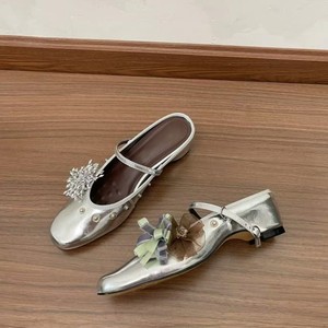 ファッショナブルな DIY バックルフラワーバックルハーフスリッパ女性の夏の新しいラウンドトゥリベットインナー高さマリージェーンスリッパ