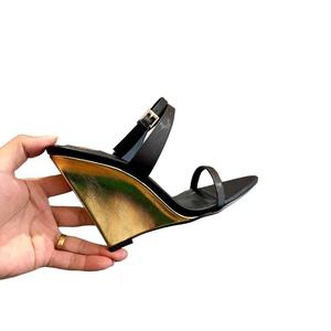 Yangshulin ゴールデンウェッジサンダル女性のための 2025 夏の新しいアウターファッション新しいスタイルスカートハイヒールの靴女性のための