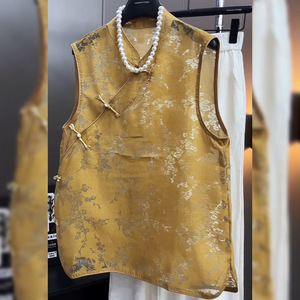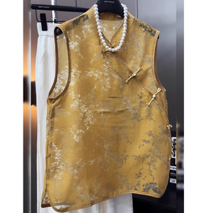 ハイエンドデザインジャカード薄手ベストハイエンドレトロシックユニークなボタンベストトップトレンディ