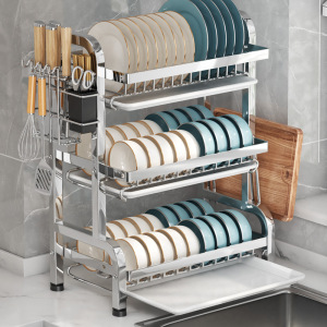 ステンレス製ボウルラック三層食器水切りラックキッチン収納ラック食器収納ラック多機能カウンタートップ食器棚