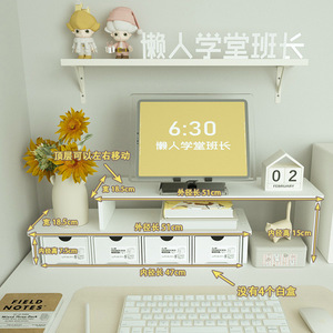 デスクトップコンピュータ高架モニター収納ラック寮コンピュータ高架デスクトップ収納ボックスインガールハート