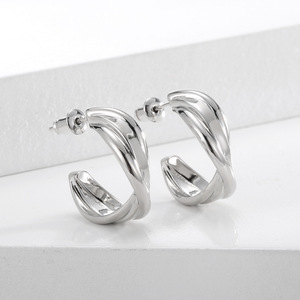 2025 新イヤリング公式旗艦店メタルコールドスタイルレトロ香港スタイルシンプルクロスプレーンフープイヤリング