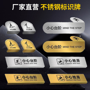 ホテルの階段に注意してください。ステッカーに警告標識が貼られています。ステンレス製の滑りやすい注意標識が貼られています。