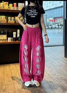 ヒョウ柄ワイドレッグパンツ 2025 春夏新作ハイウエストレースルーズストレートワイドレッグパンツガールズカジュアルロングパンツ