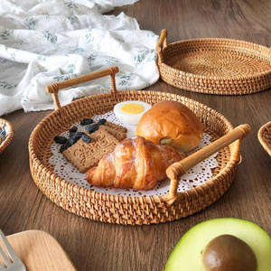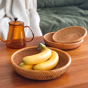 田舎風ベトナム籐ドライフルーツスナック収納トレイパン蒸しパンバスケット家庭用フルーツバスケットコーヒーテーブルトレイ