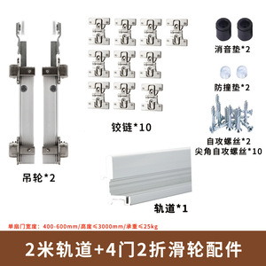 无下轨折叠门平移五金配件两折四门吊轮推拉门衣柜轨道衣帽间