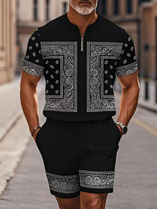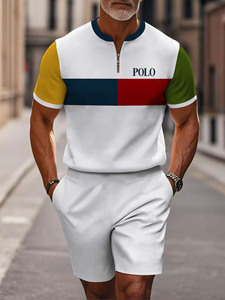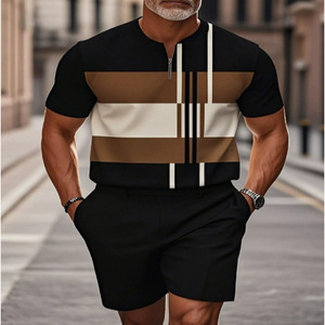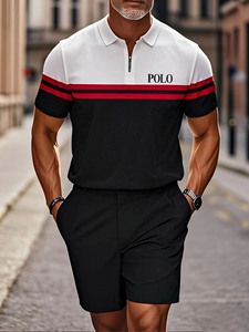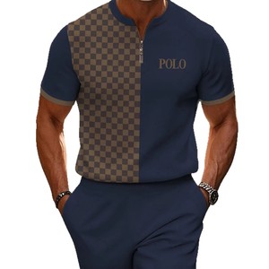 夏の新しいヨーロッパとアメリカのクロスボーダーAmazonファッションメンズカジュアルスポーツジッパーポロ半袖ショーツスーツ