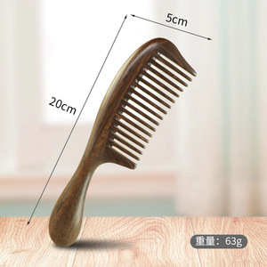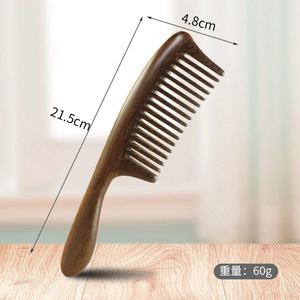 黒檀継ぎ丸太ハンドル粗歯コーム+緑竹絹袋