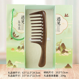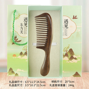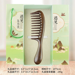 黒檀粗歯ハンドル大ナイフコーム + オリエンタルビューティーギフトボックスギフトバッグ