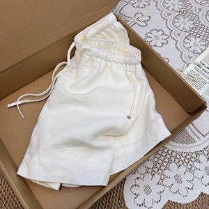 CHAOレベルのオススメ!女性のための白い薄いリネンショートパンツ 2025 夏の新しいアウターウェア脚長ワイドレッグパンツ