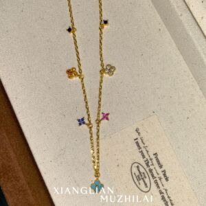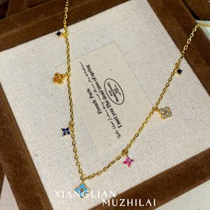 Xiaohongshuの人気の四つ葉の花のカラーネックレス、多用途の夏のドーパミン鎖骨チェーン、ハイエンドのニッチドロップシッピング