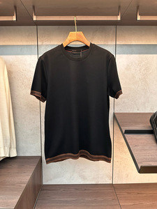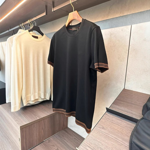 夏の新作、オールドマネースタイルのメンズカジュアル、コントラストカラーのラウンドネック半袖、快適な薄手コットン半袖Tシャツlp