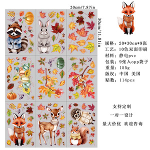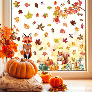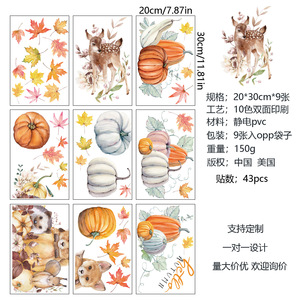 2025 新しいクロスボーダー Amazon 秋静電ウィンドウステッカー感謝祭カエデの葉カボチャ動物ガラス窓ステッカー