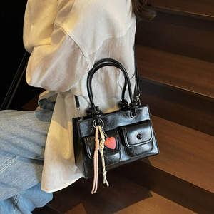 クロスボーダー韓国版レトロファッションデザインレディース2025夏新作ショルダーボストンバッグ大容量ピローバッグ