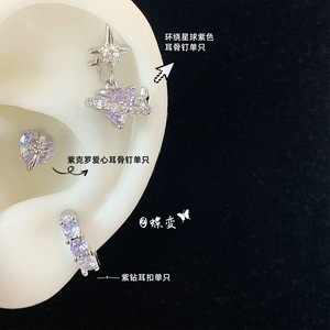 バタフライフラッシュニッチユニークなスターバーストラブペンダントイヤリング医療用チタン鋼ノーピアスイヤリング甘くてクールで多用途