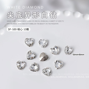 10個のネイルアートポイント、ラブダイヤモンド、斜めハートダイヤモンド、ホワイトダイヤモンド、ピーチハート、スクエア透明ラインストーン、ネイルデコレーション