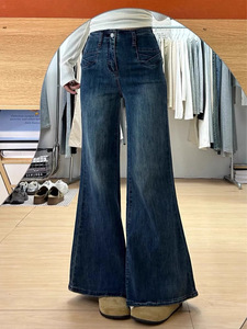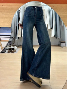 女性のためのレトロなハイウエストのソフトジーンズ秋の新しいファッションスリムでゆったりとした非フィットダークブルーのロングパンツ