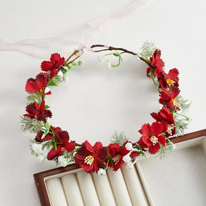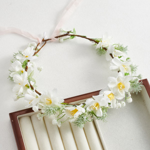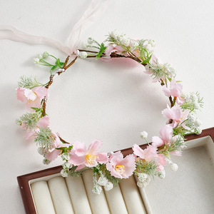 フォレストスタイルのブライダルガーランドヘアアクセサリー、ハイエンドのシンプルなスタイルのウェディングドレス写真アクセサリー、女性用のハイヘッドヘッドバンド、花