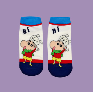 日本のしんちゃん漫画ソックス女性用コーマ綿男性と女性のボートソックスアニメ漫画かわいいイラスト女性の靴下浅い口ショート