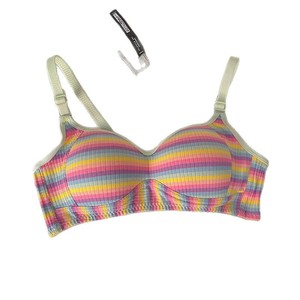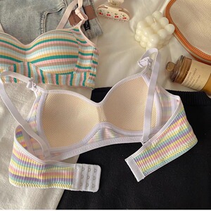 学生対照的なカラーレインボーストライプドーパミンガール下着女性のプッシュアップ小さな胸を大きく見せるセクシーなたるみ防止ブラジャー