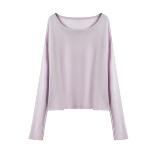 アメリカとヨーロッパの同じスタイルのトリアセテートテンセルミント軽量ニット空調シャツ快適なルーズ長袖ラウンドネックボトリングシャツ女性用