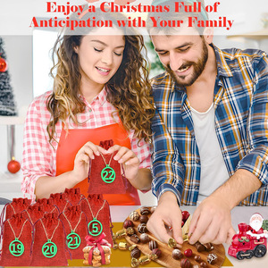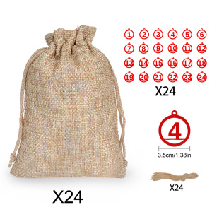 新しいクリスマスアドベントカレンダーバッグ番号タグリネン巾着ポケットカウントダウン巾着ギフトキャンディーバッグ