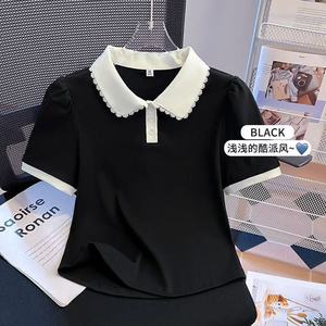 大きいサイズの女性用右肩半袖Tシャツ2025年夏新作ファットmmフェイクツーピースドールカラートップス外国風ポロシャツ