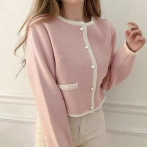 コントラストカラーのラウンドネックシングルブレストシンプルな気質ニットカーディガン女性の秋冬の新しいクロスボーダー外国貿易セータージャケット