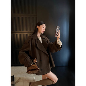 2616# 区区欧阳 麂皮绒翻领风衣外套春季设计感小众