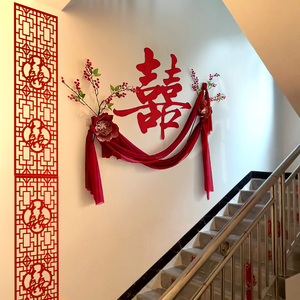 結婚式の階段手すり背景壁ハッピーワード装飾男性と女性の田舎の自作の家の庭の結婚式のレイアウトセット