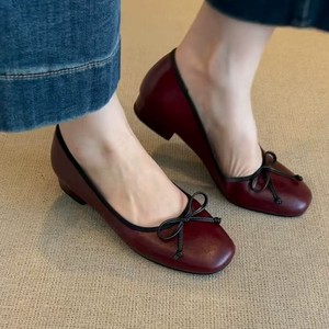 牛革バージョン~女性用の小さな香りのレトロなフラットシューズ、夏のフレンチソフトソールバレエシューズ、リボン付きメリージェーンシューズ