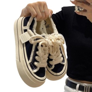 カジュアルスポーツレディース超人気ブラックロートップ醜いかわいいラージヘッドラウンドトゥマンゴーヘッドスニーカー厚底ローエッジキャンバスシューズ