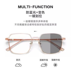 クラシックスクエアフレーム色変化メガネ、紫外線防止スマート感光メガネ、軽量ビジネス男性と女性の同じスタイルの近視メガネ
