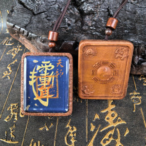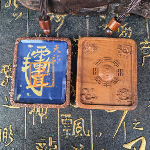 龙虎山直发雷击枣木手绘紫薇讳天师印太极四神兽吊坠木牌木雕挂件