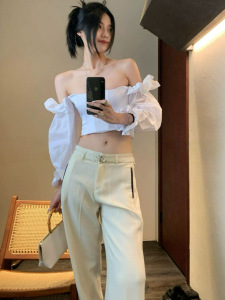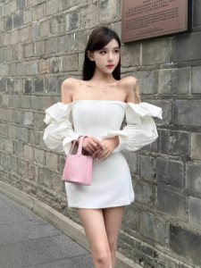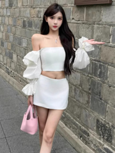 Paris Georgi@25ss ホワイト ワンショルダー パフスリーブ トップス フレンチ エレガント シンプル カジュアル
