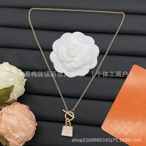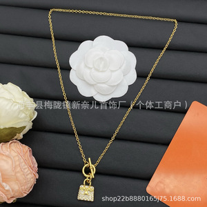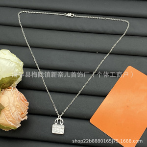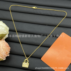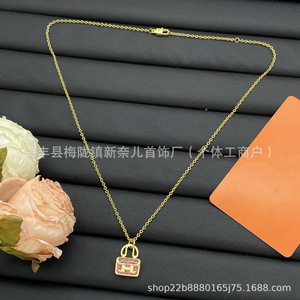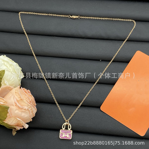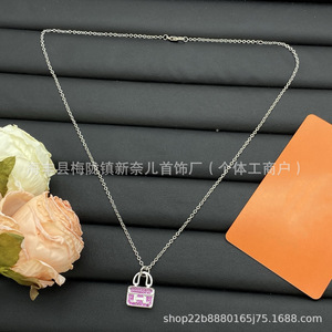 Aijia H 文字フルダイヤモンドネックレス女性のためのカンカンバッグピンクダイヤモンドローズゴールドペンダント絶妙な鎖骨チェーンメーカー卸売