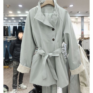 欧货高级风衣立领洋气女装2025春季新款韩版系带大衣宽松休闲外套