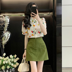 小柄で遊び心のある女性向けスーツスカート 2025年夏 超人気年齢軽減美しいシャツAラインスカート2点セット