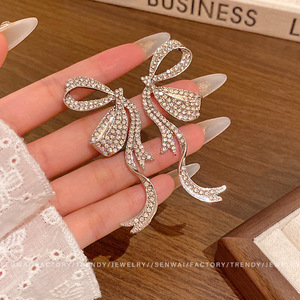 女性用フルダイヤモンドリボンリボンイヤリング、ハイエンド、軽い高級感、パーソナライズされたタッセルイヤリング、ヨーロッパとアメリカの誇張されたパーソナライズされたイヤリング