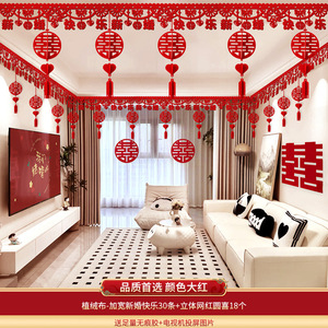 ウェディング用品、ハッピーワードラテアート、新居装飾シーンレイアウト、部屋、リビングルーム、ベッドルーム、ウェディングルームセット、ロマンチックなウェディングカーテン